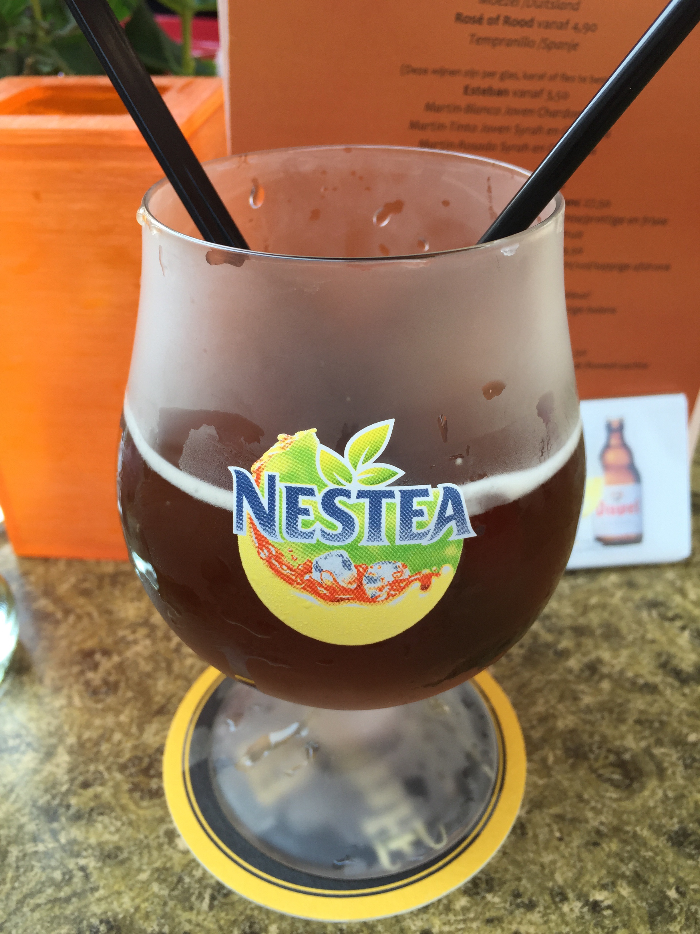 We were hungry and stopped for some lunch. Here, when you order iced tea – it’s carbonated! Strange, but good. The sandwich was a Ham/Kaas/Ananas Tostie (ham/cheese/pineapple toasted sandwich). These are VERY common for lunch. Then we grabbed a Belgian beer afterwards…it was quite tasty!
