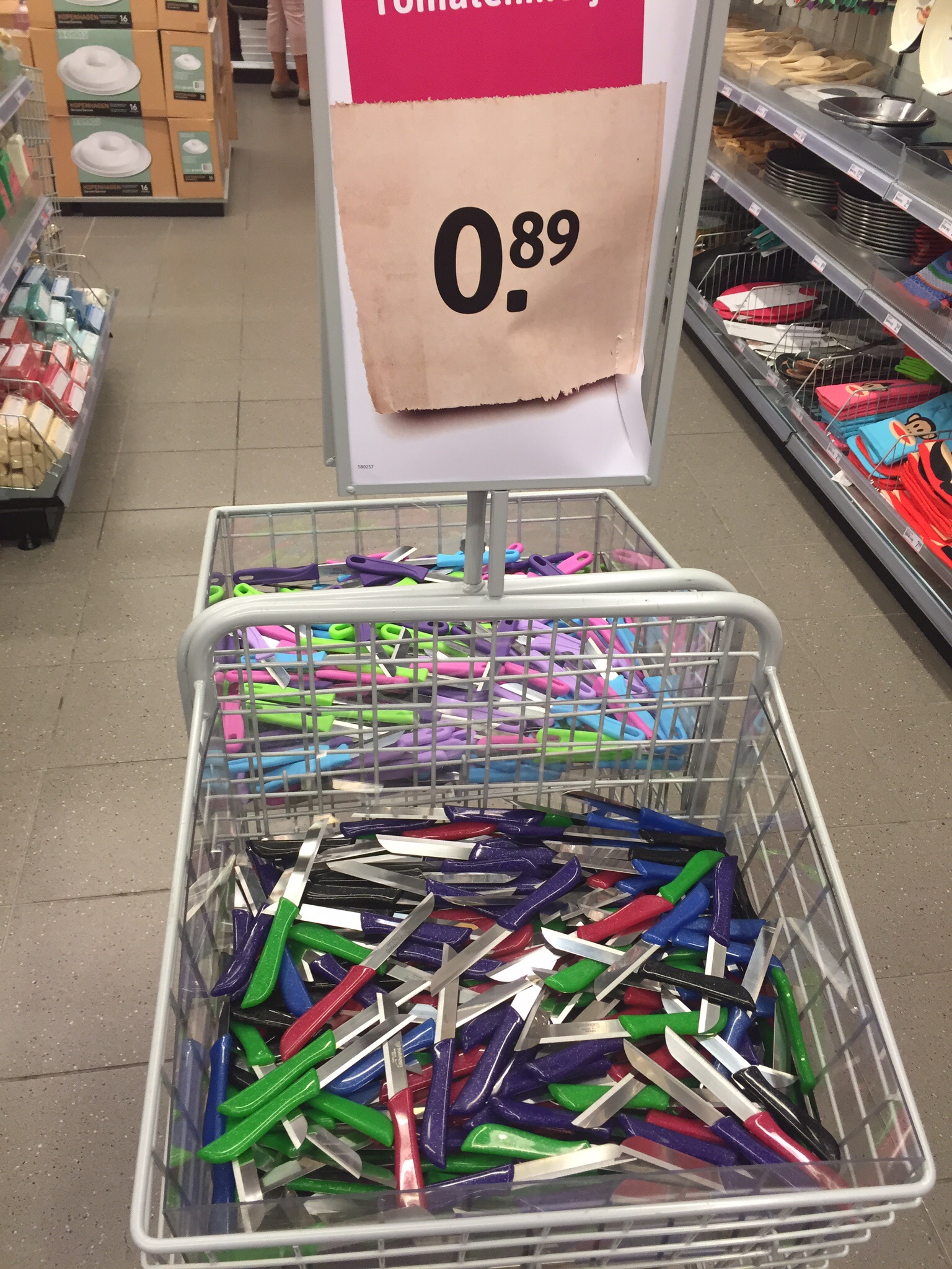 Walking around a different shopping center in Breda we came across a few cool stores. This one just had a random bin of cheap paring knives.