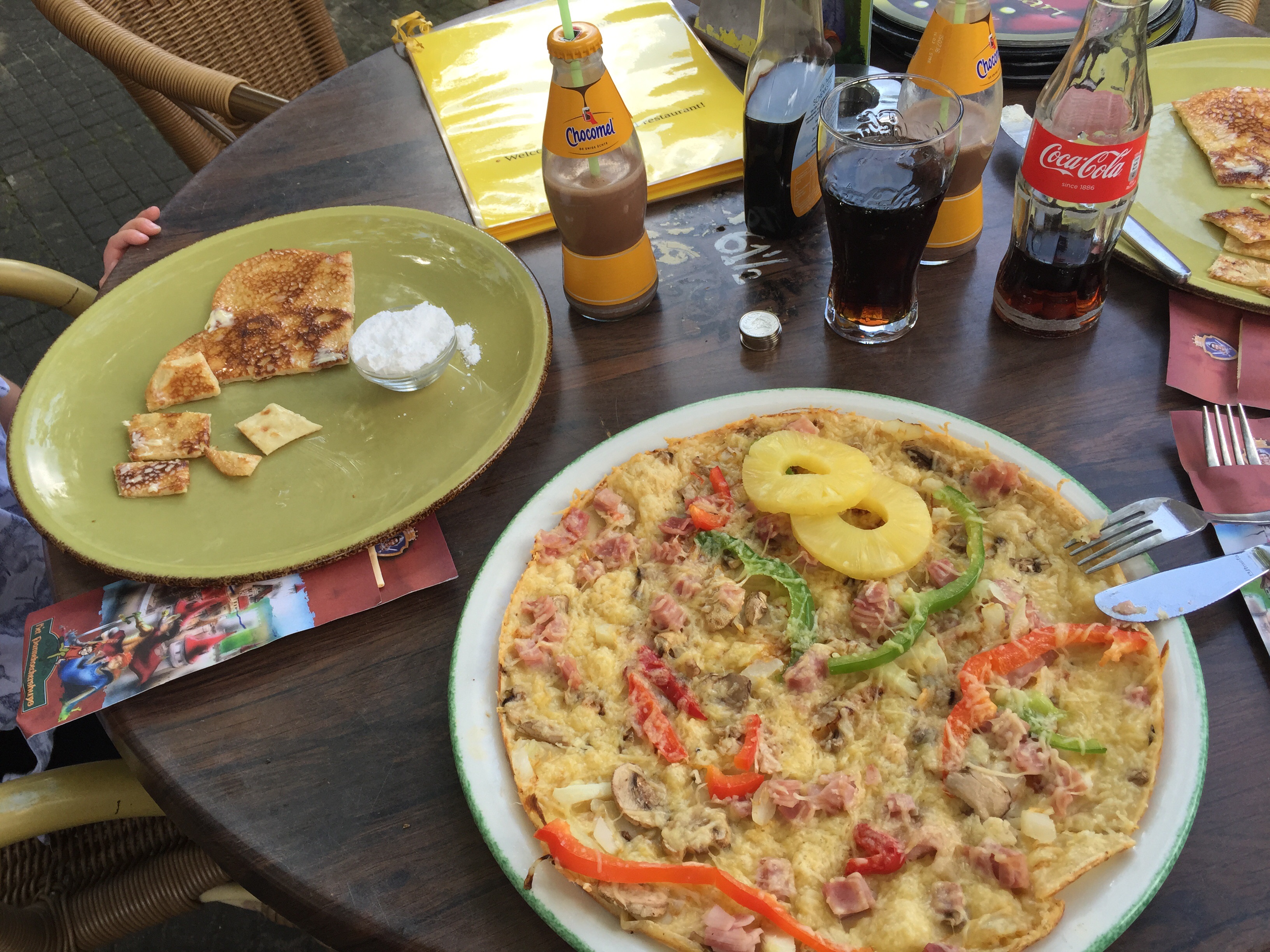 It is a very family and kid friendly establishment. I mean, what kid (and parent) doesn’t like pancakes and beer, with ice cream for dessert?! The girls tried a plain sweet pancake (babysteps!) and I had a savory Holland pancake. Both were delicious!!