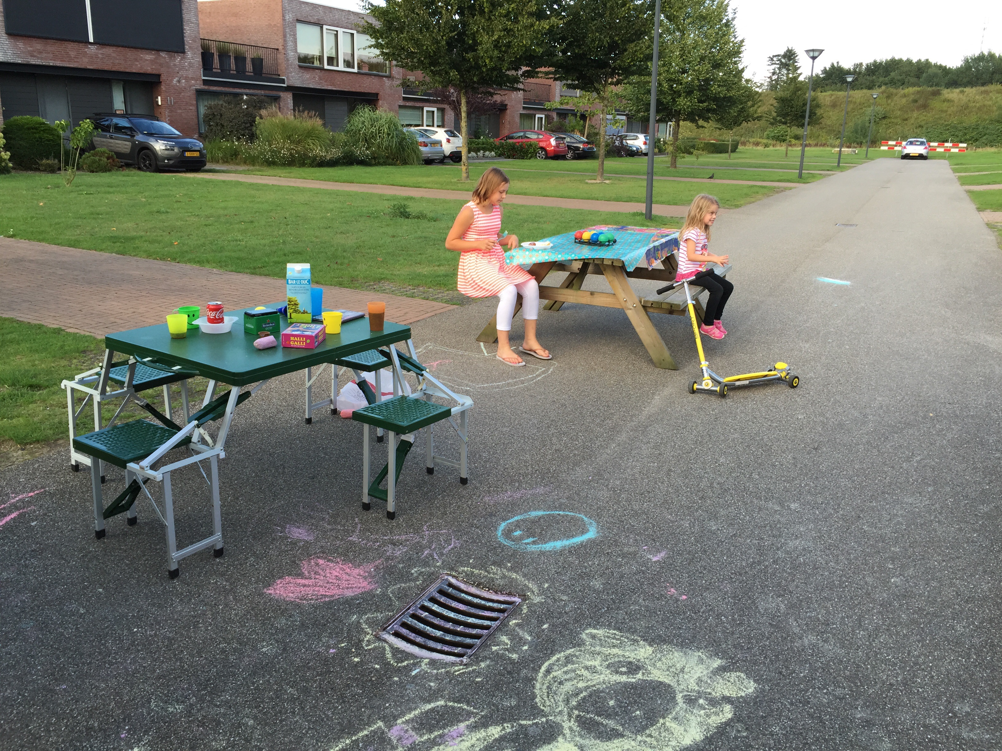 The kids all played together, riding scooters, playing with balls, and drawing with chalk. Most of the younger kids don’t speak any English yet, but that doesn’t seem to be too much of a barrier when it comes to playing!