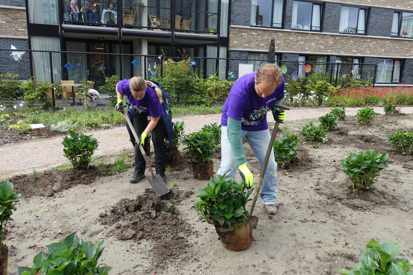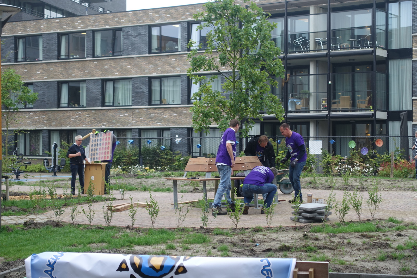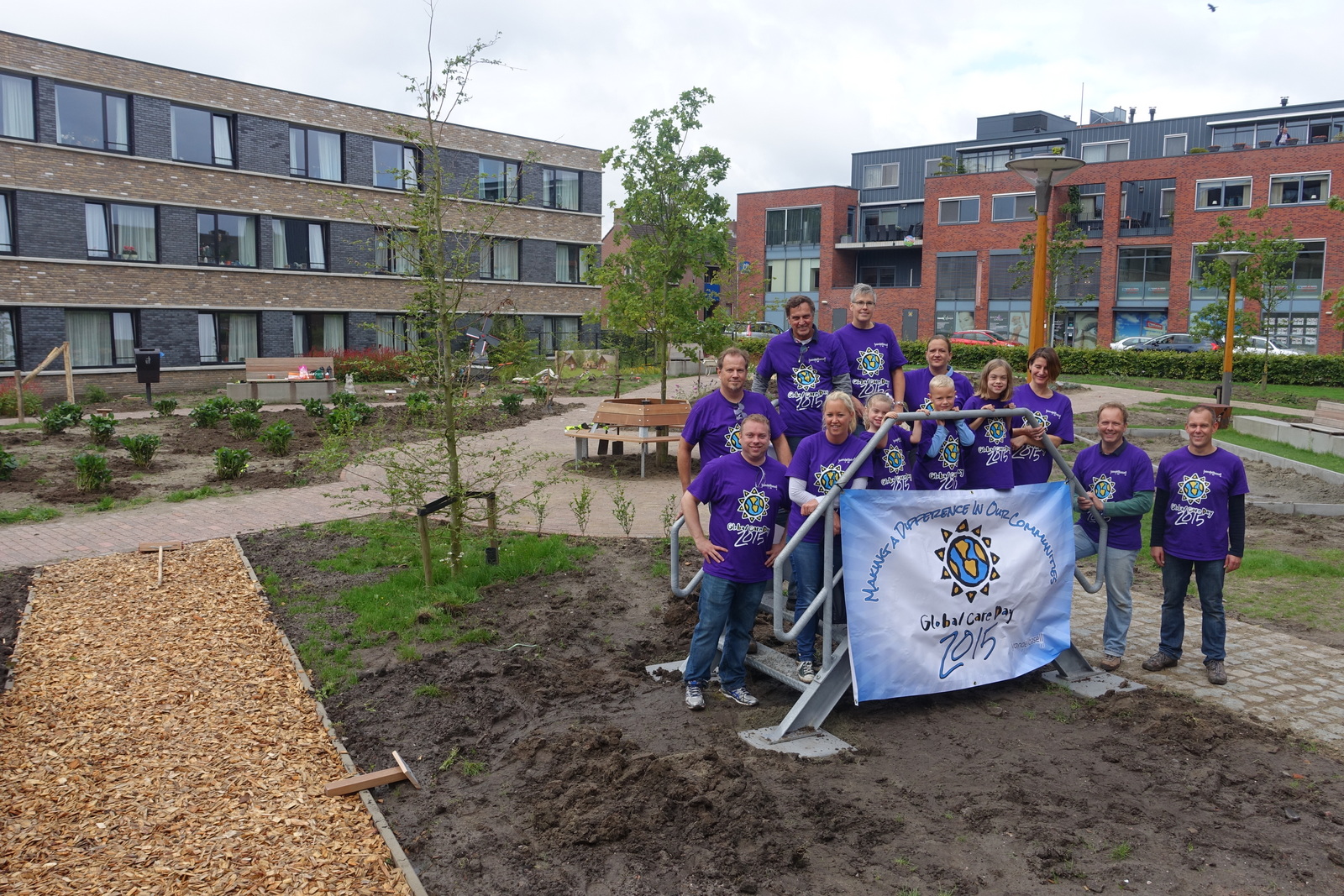Every year MyMan’s work has a Global Car Day where volunteers from the company go out into the community and help cleanup an area in need. The girls and I have almost always participated in this event when we lived in Houston and it’s always been a rewarding experience. Volunteering here in Holland was no different. In the past, the volunteers for the Dutch sites have mainly worked at schools. This year, we were working in a common area for a senior living/assisted living facility.