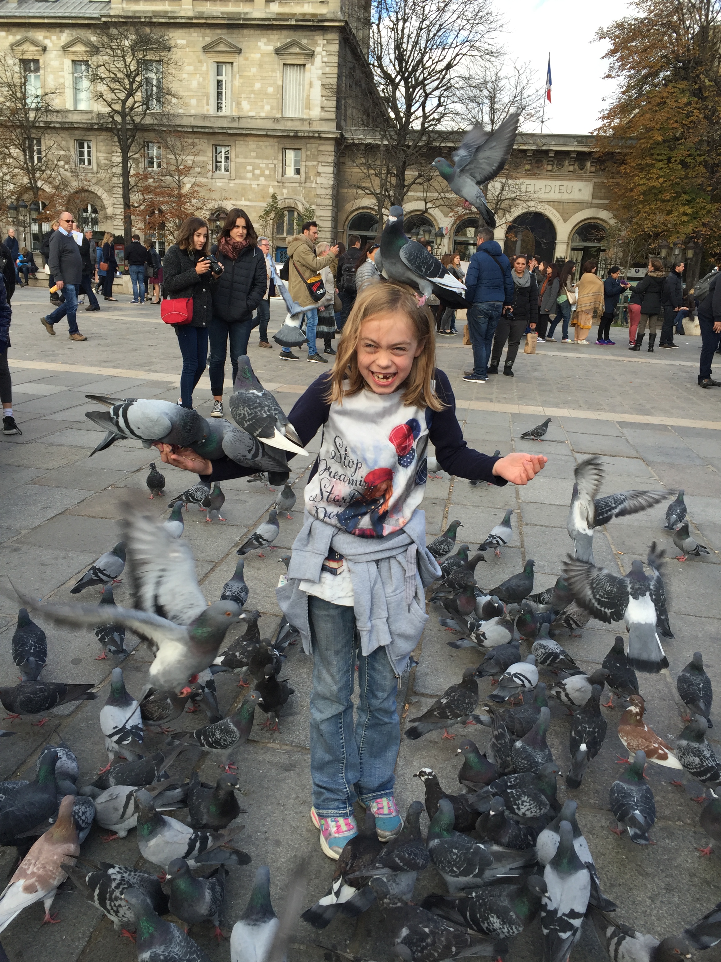 We walked around to the front of the Cathedral where the girls (mainly Oldest) had a fantastic time with all the pigeons!