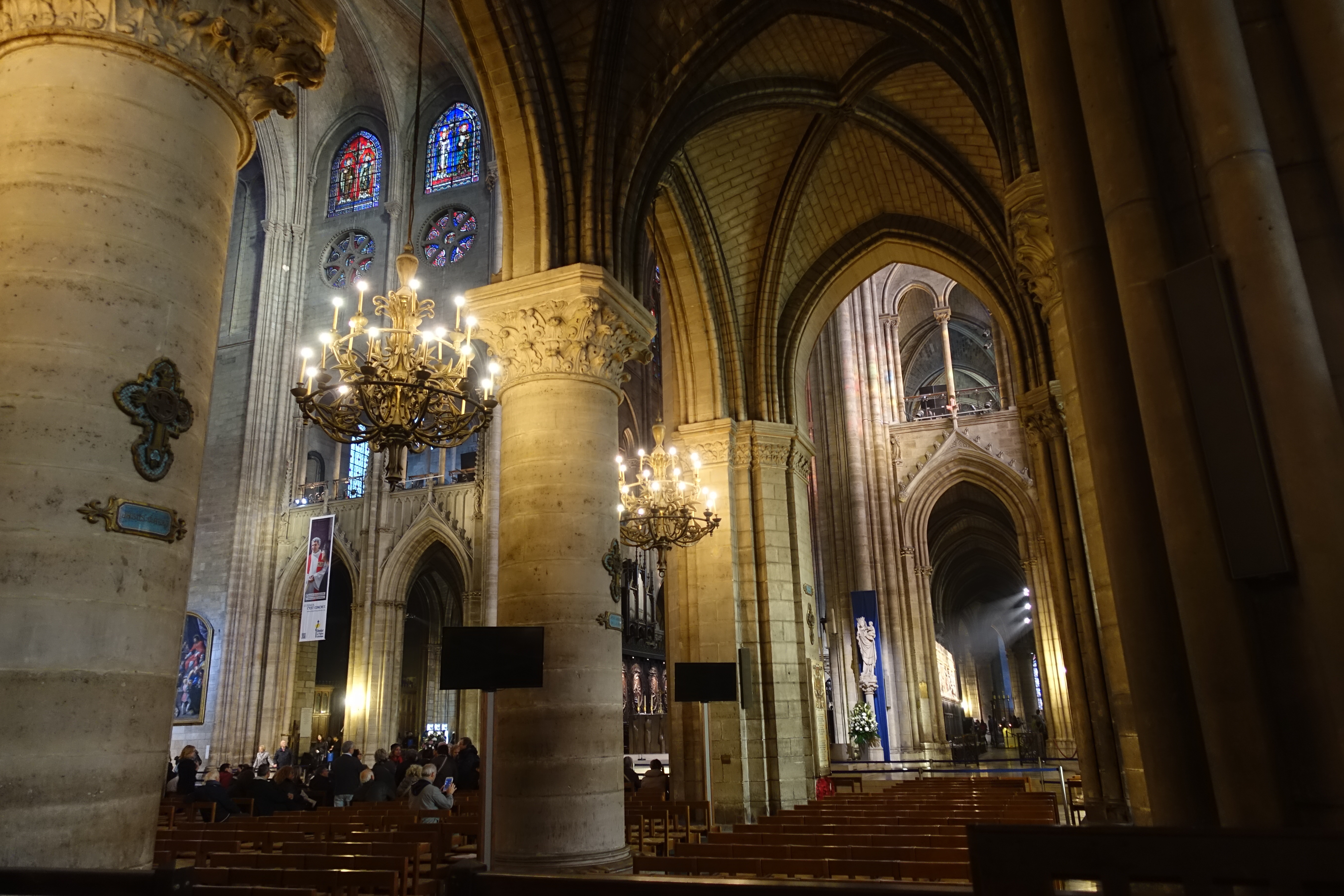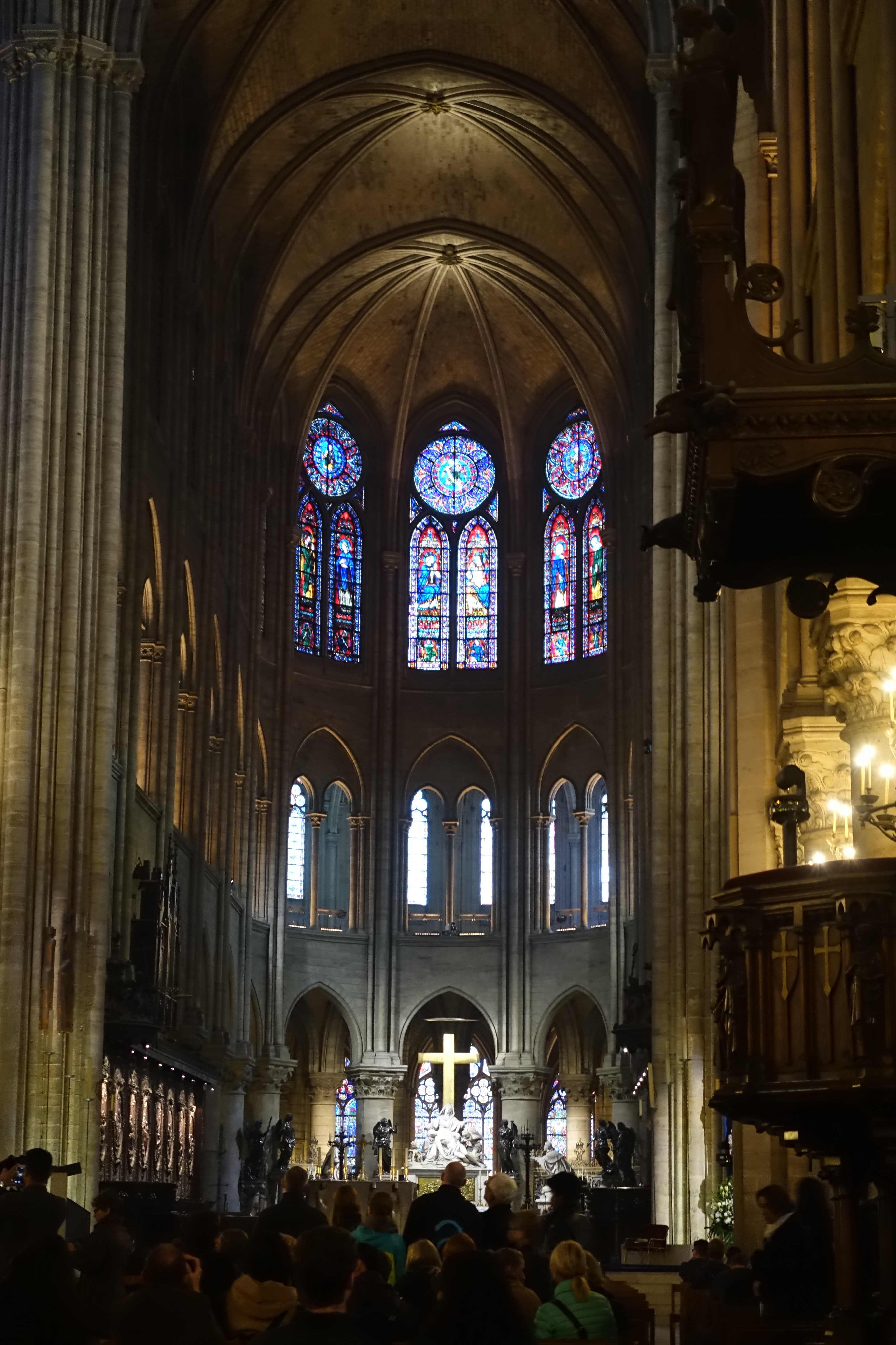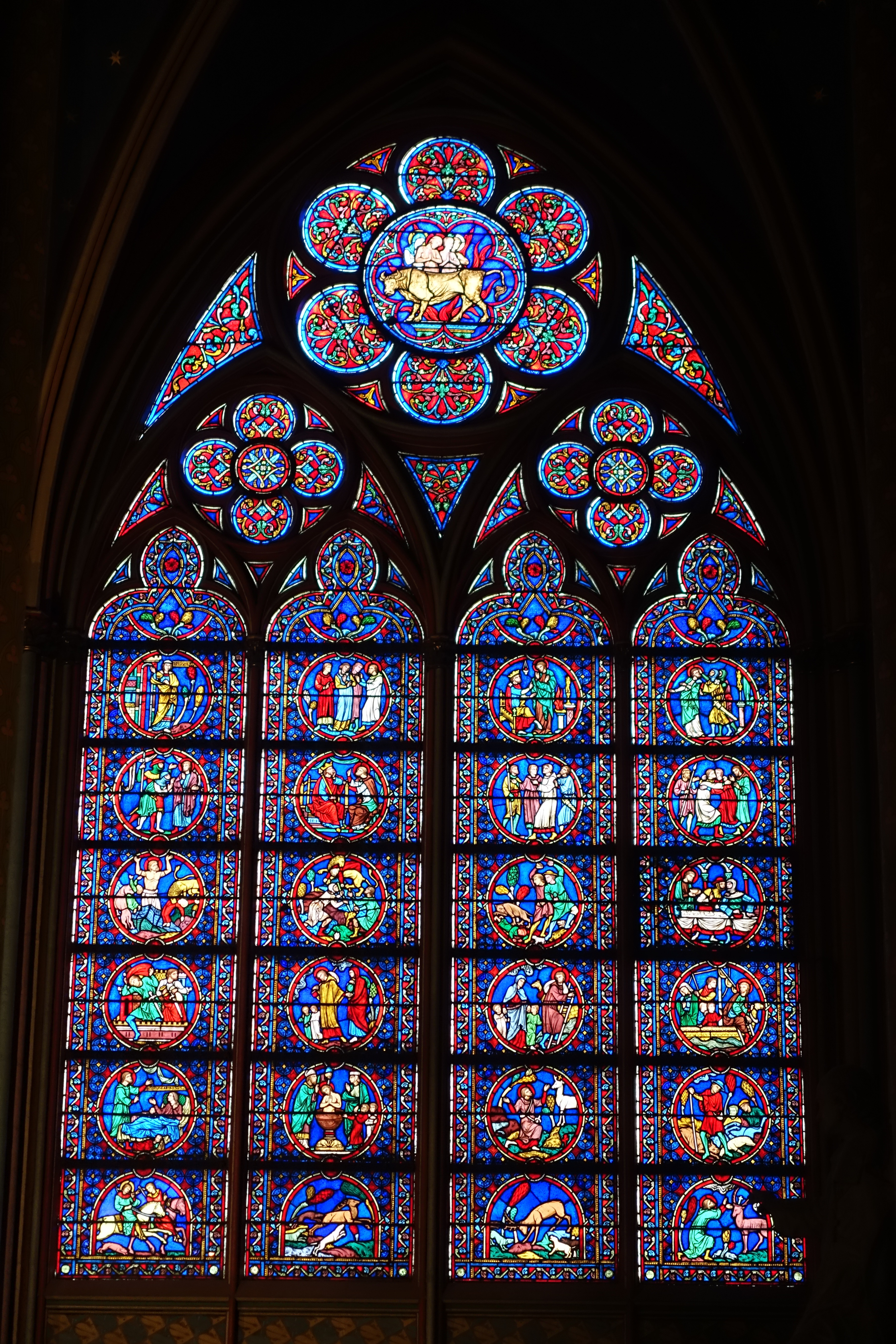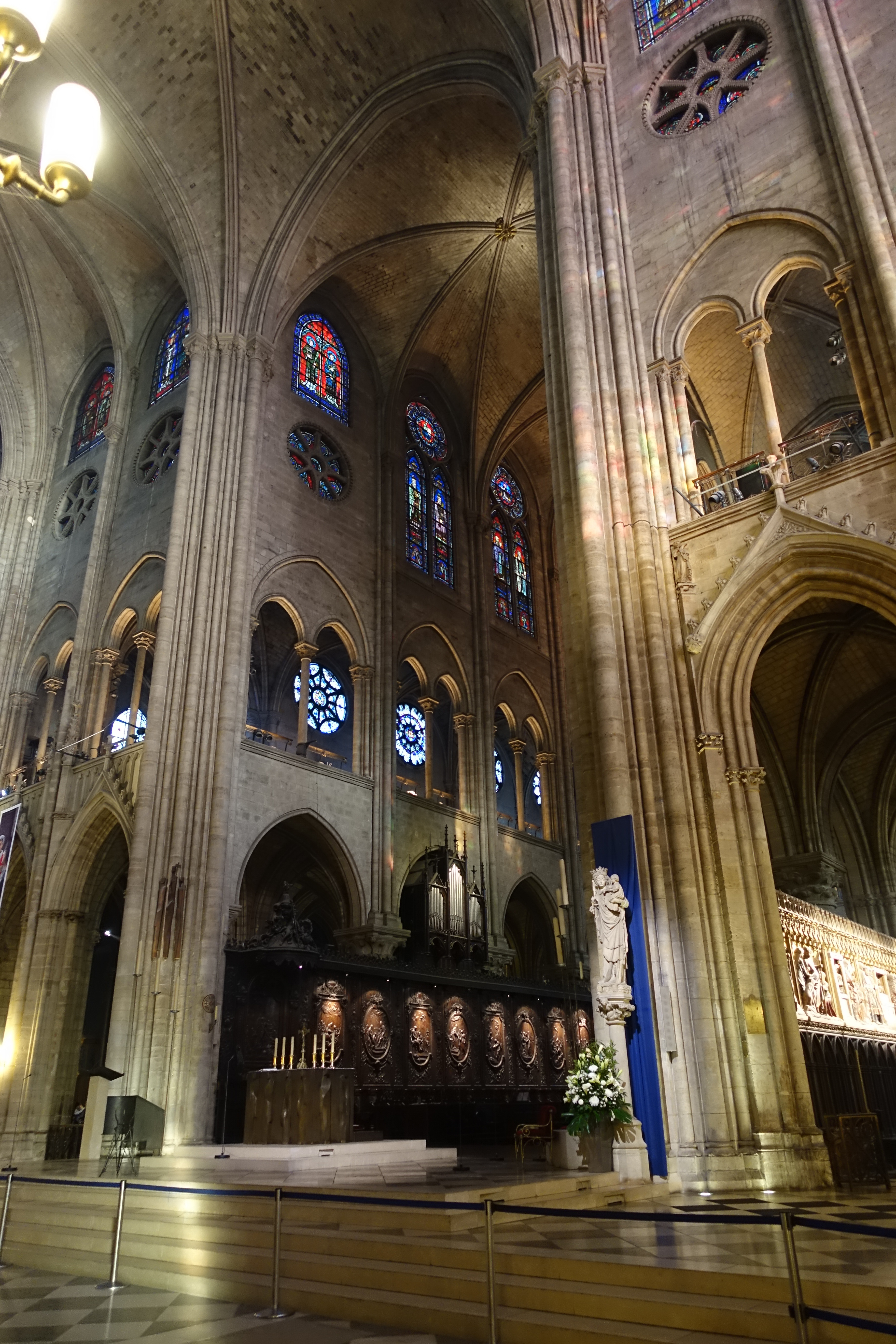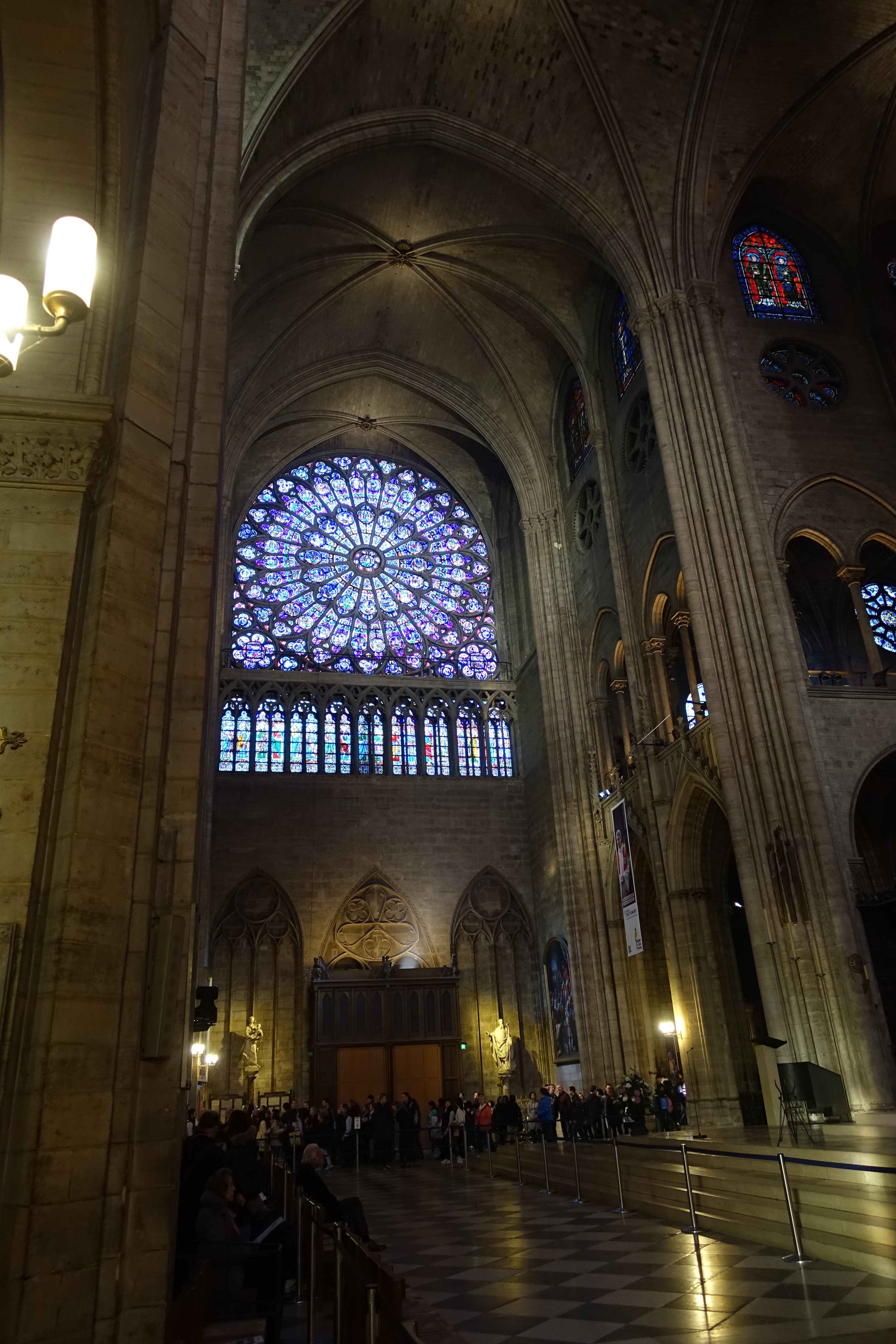 The stained glass windows were beautiful. Below on the left is the Rose Window.