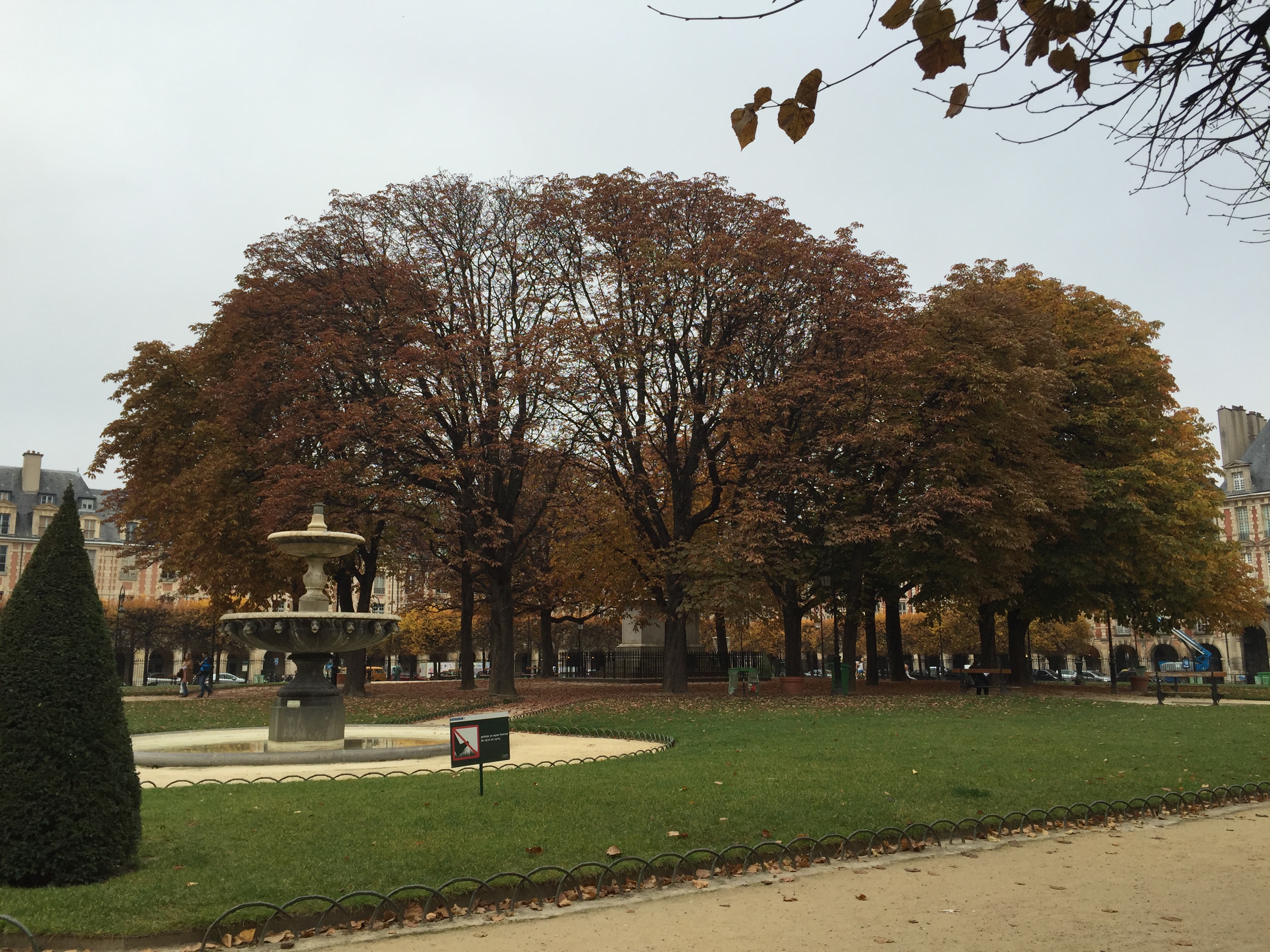 Our meeting place was a square in the middle of town. It turns out that it was Louis XIII’s square. It had been given to him as a wedding present from his father. The square was massive for its size being in the middle of a city. And the entire square is surrounded by buildings, which were homes of the royal family. The fall colors of the leaves made this area even prettier!