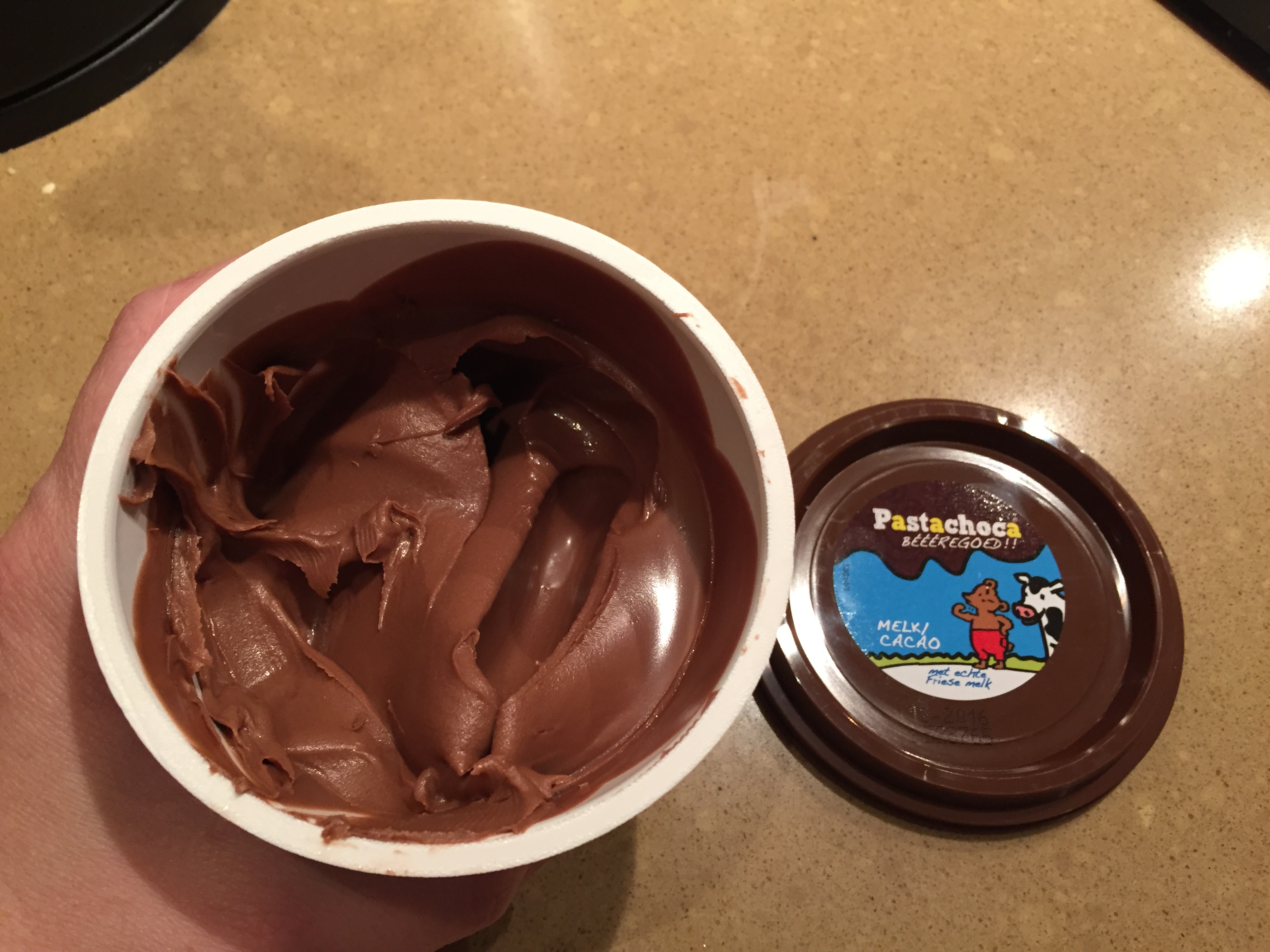 Something else the Dutch love to spread on bread….Nutella! Or some version of a Nutella type spread. My kids HATE nuts, so they dislike Nutella, and peanut butter. But they do have a chocolate spread that is delicious!! And it tastes literally like melted chocolate. This is something else they spread on bread, and top with sprinkles!! I tend to put a little bit in containers for the girls to have in their lunch with some pita chips or pretzels.