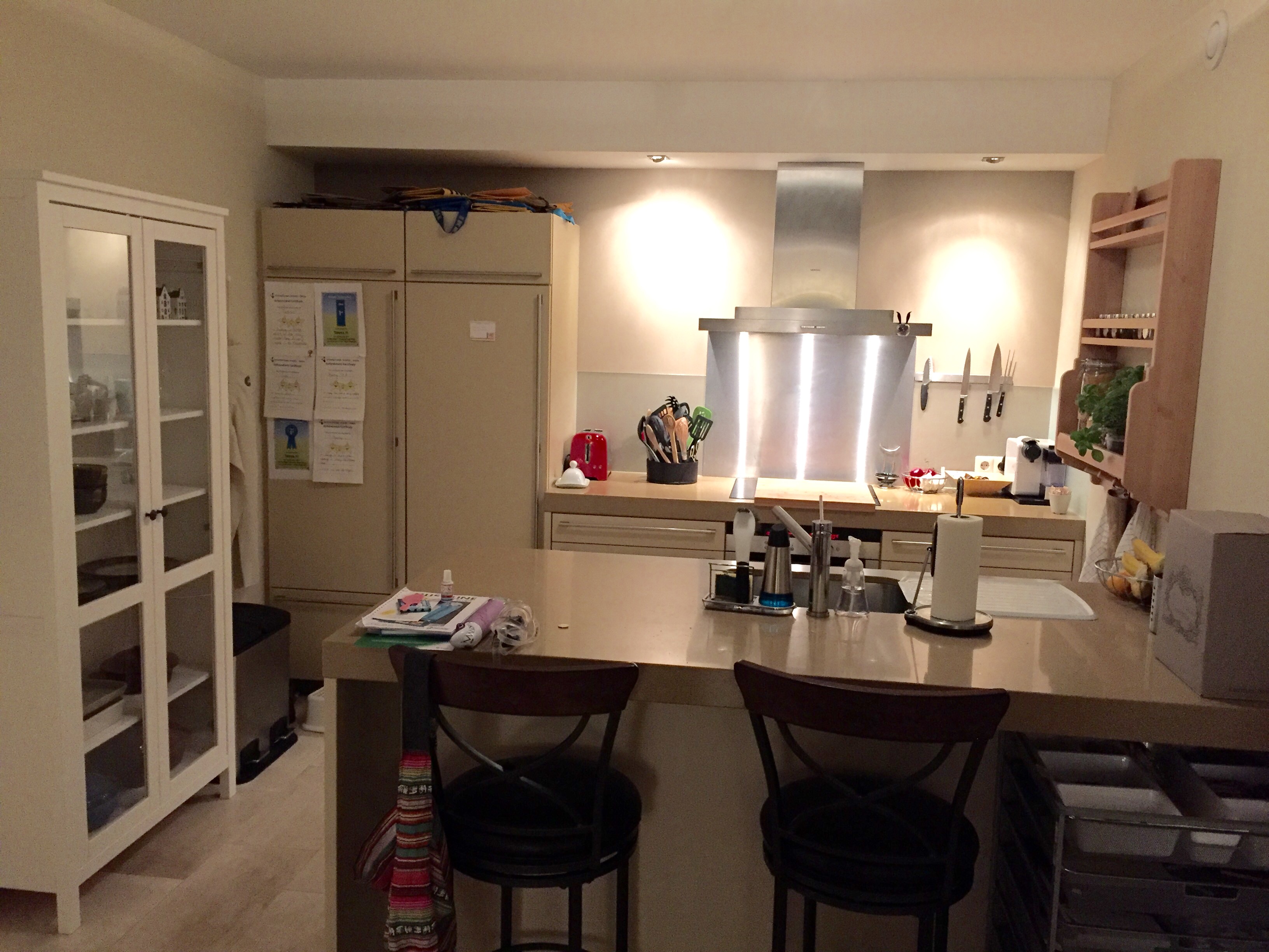 This space is my entire kitchen. See the white cabinet with glass doors there on the left? An IKEA purchase upon moving here so I had somewhere to store my dishes and glasses!