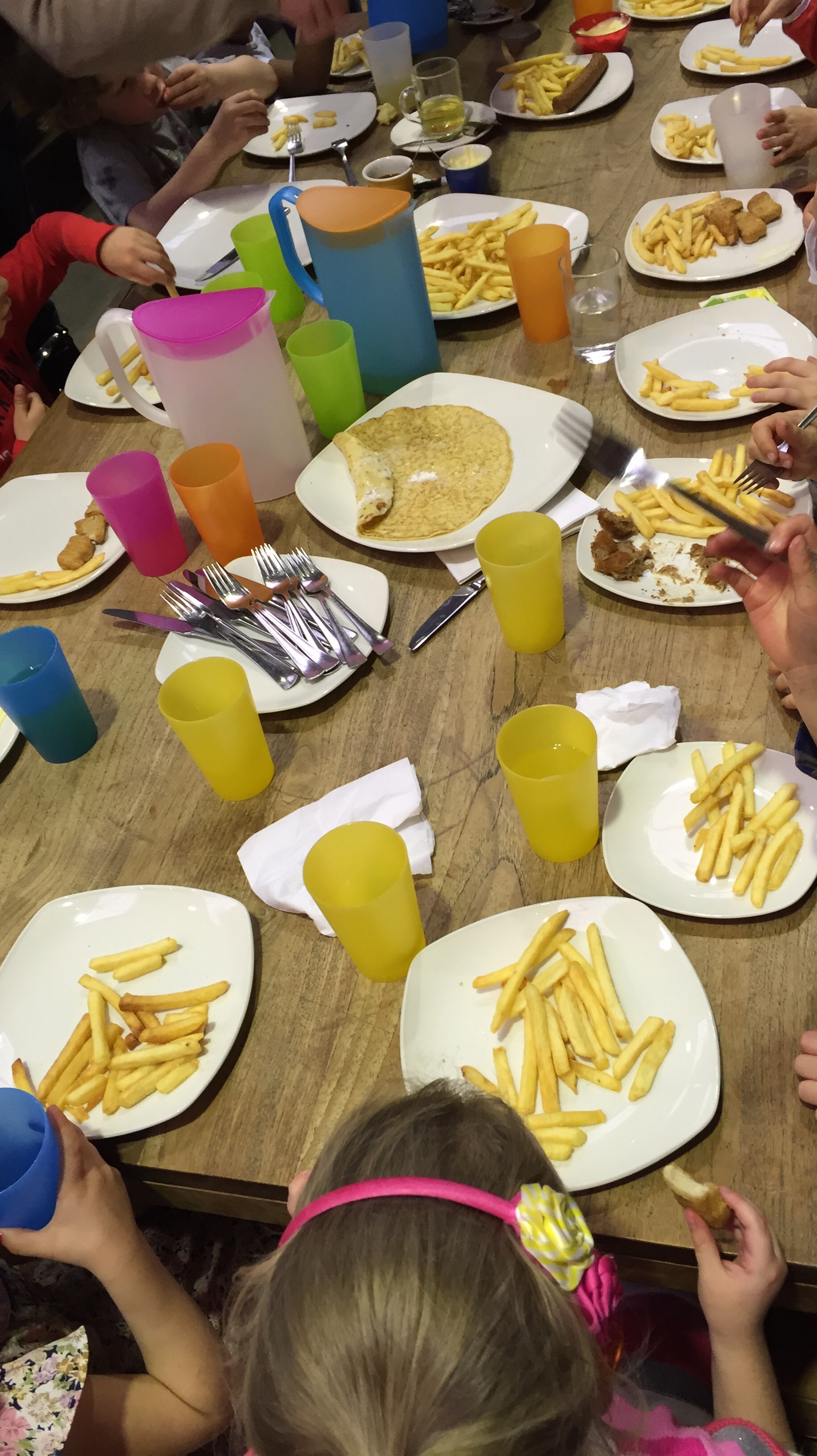 Of course this worked up an appetite, and it was time to eat!! A Dutch birthday party wouldn’t be complete without frietes with mayonnaise, pannenkoeken, and some bitterballen!! Yum!