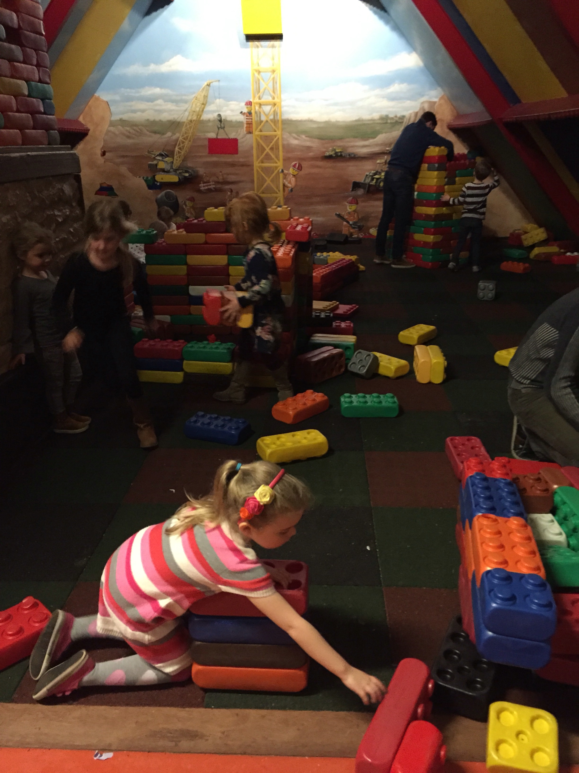 To the left of the house structure was an area that contained large Legos to be constructed.