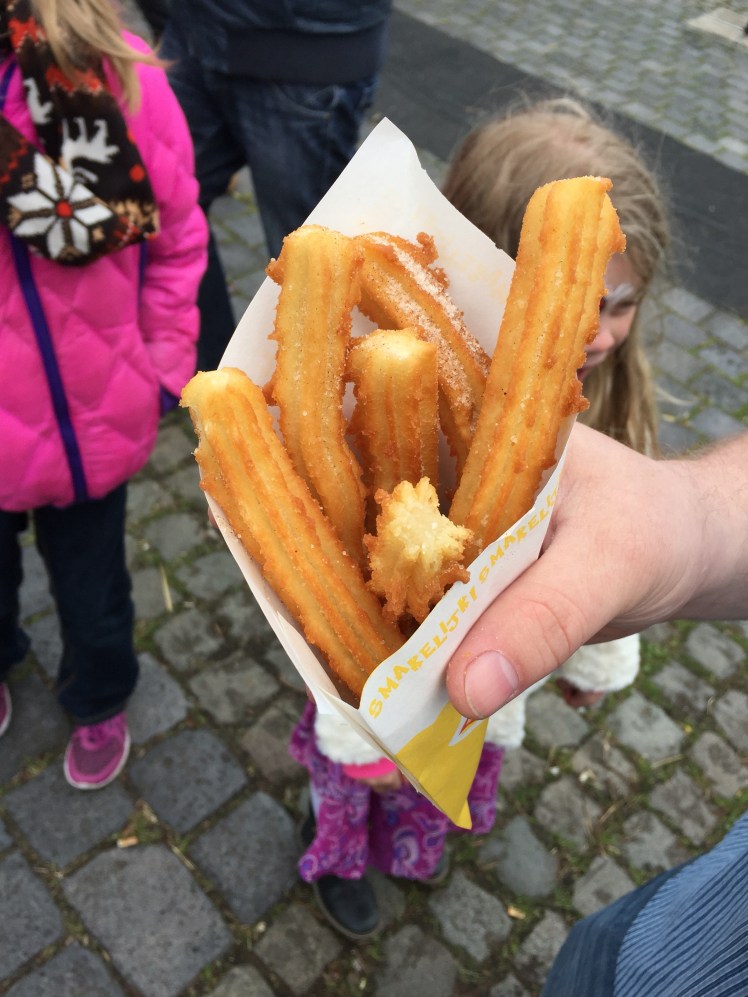 Introduced the girls to some churros…they were hot and tasty. We watched the guy make our order!