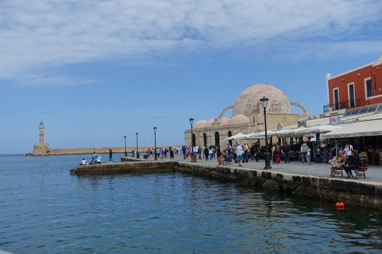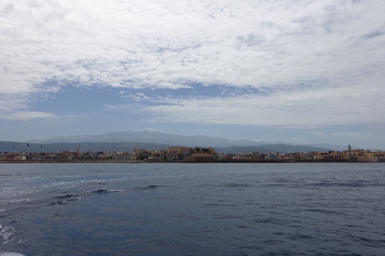 On the way out of the harbor, we saw a sea turtle! And we got to see some great views of Chania, as well as the White Mountains in the backgroun (called that because they contain a lot of limestone).