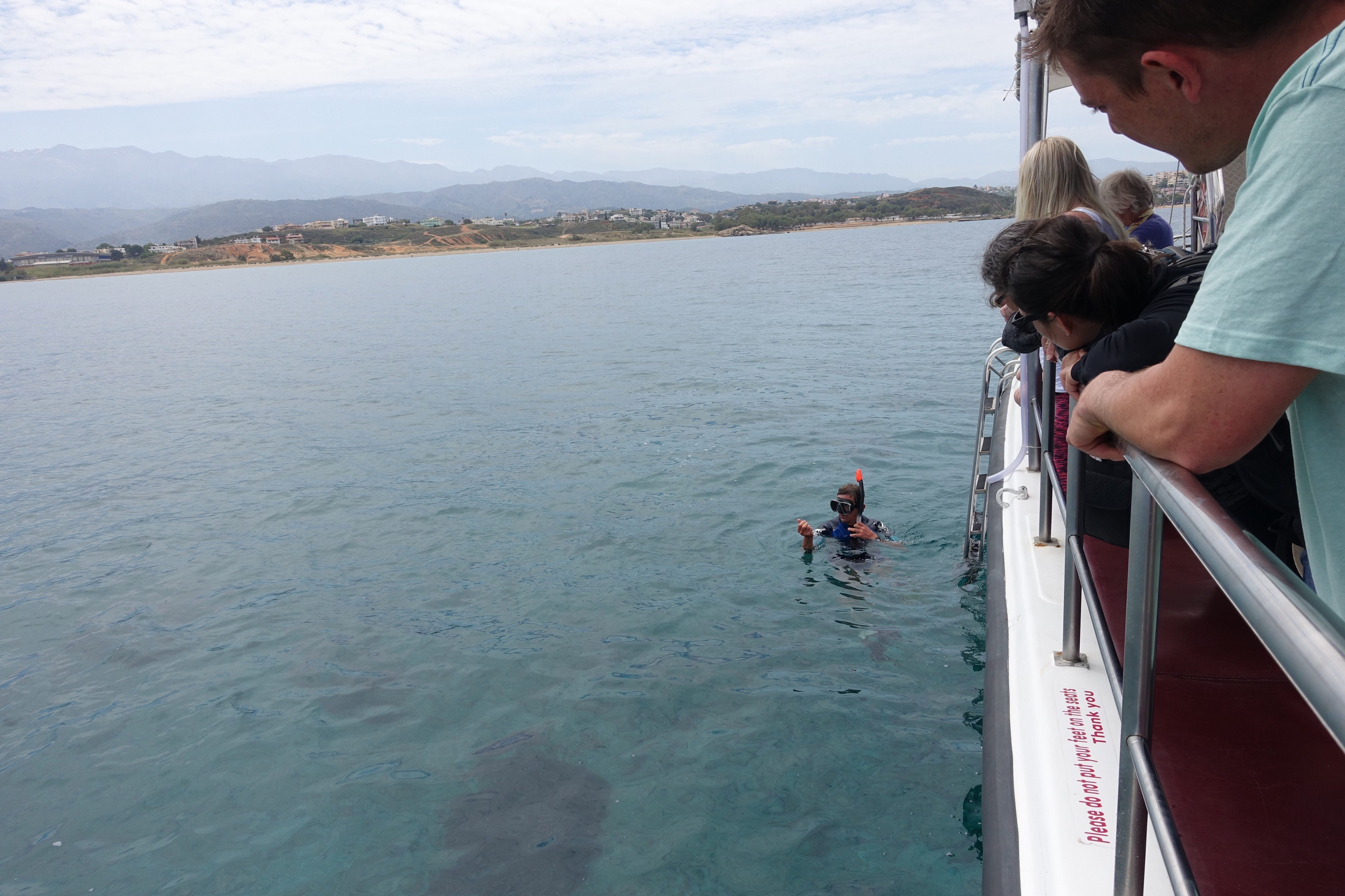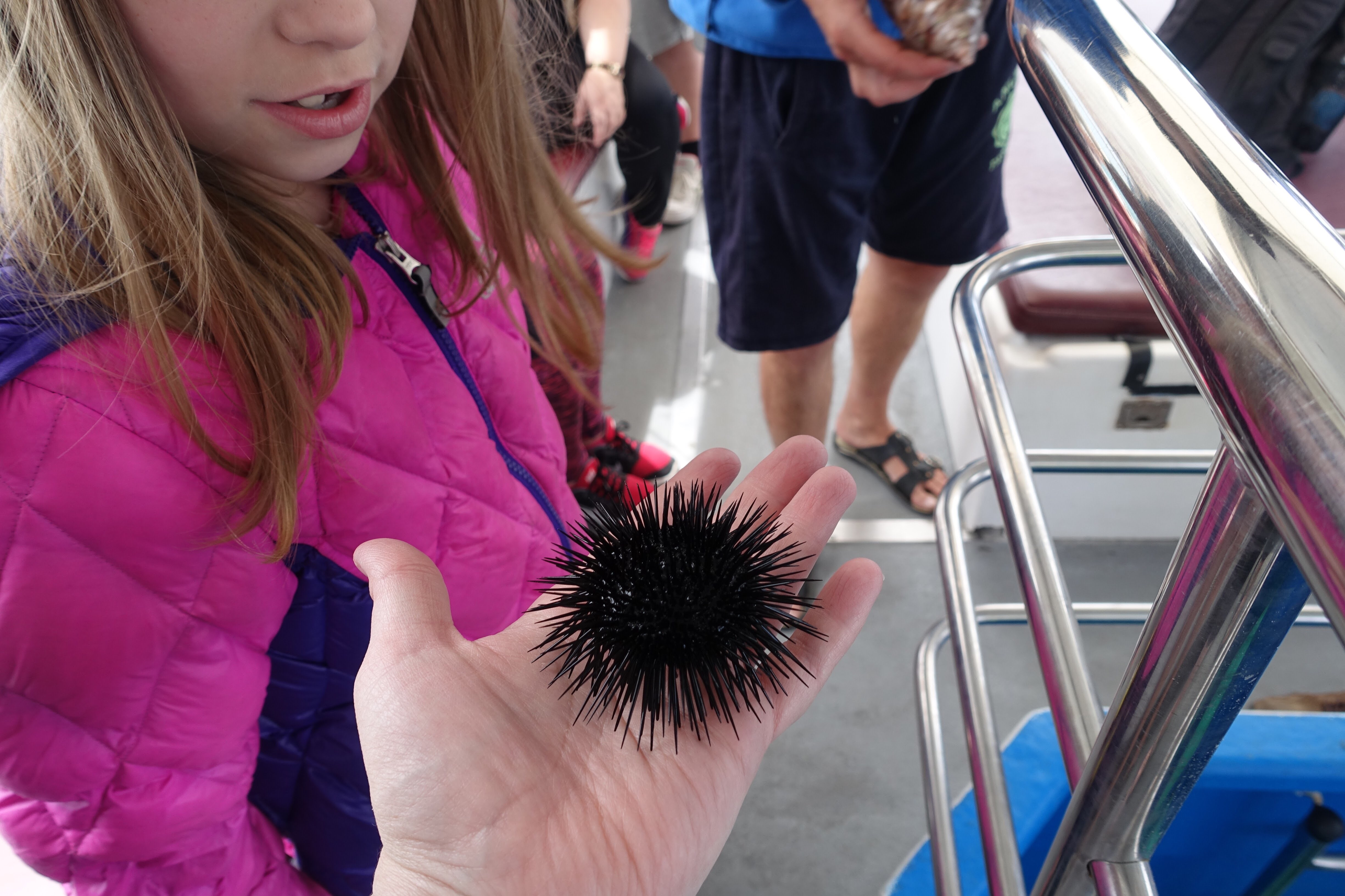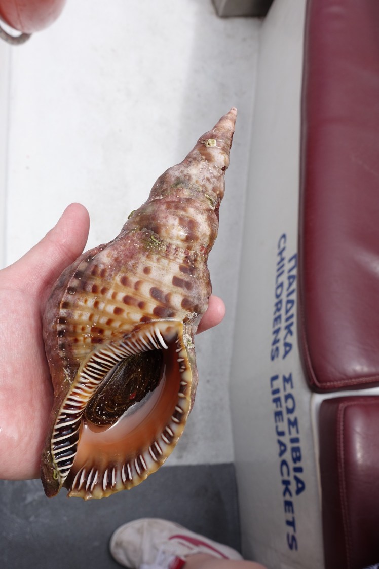 The water was still quite chilly for swimming, so the Captain put in a wetsuit shirt when he went in to look for octopus and fish. Unfortunately he didn’t find those, but did find a conch and sea urchin.