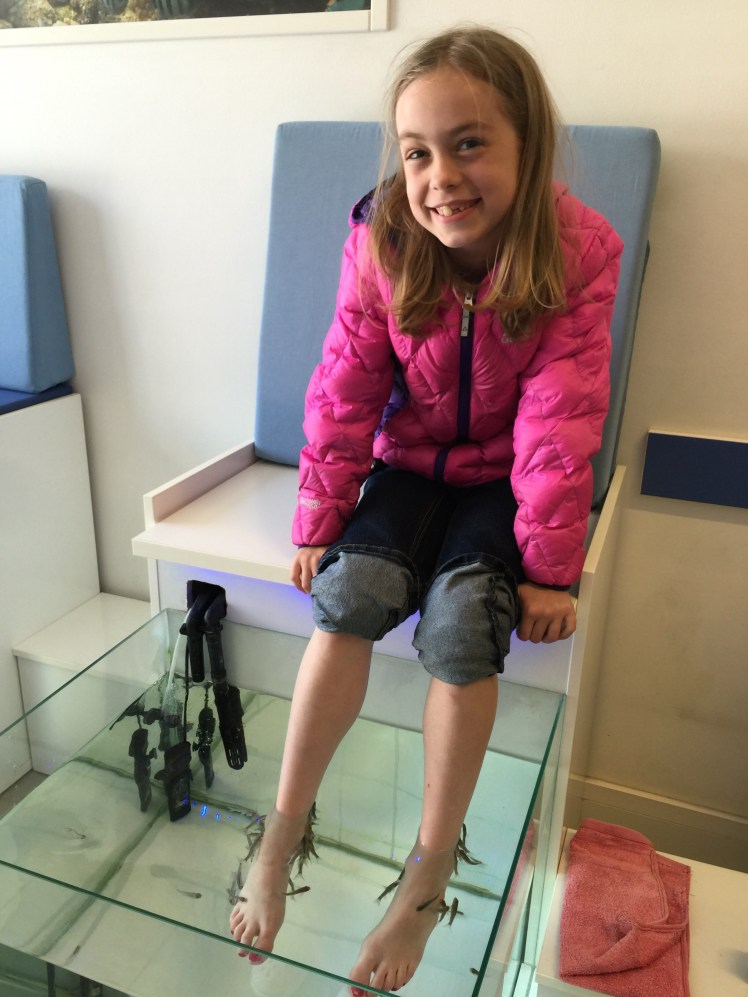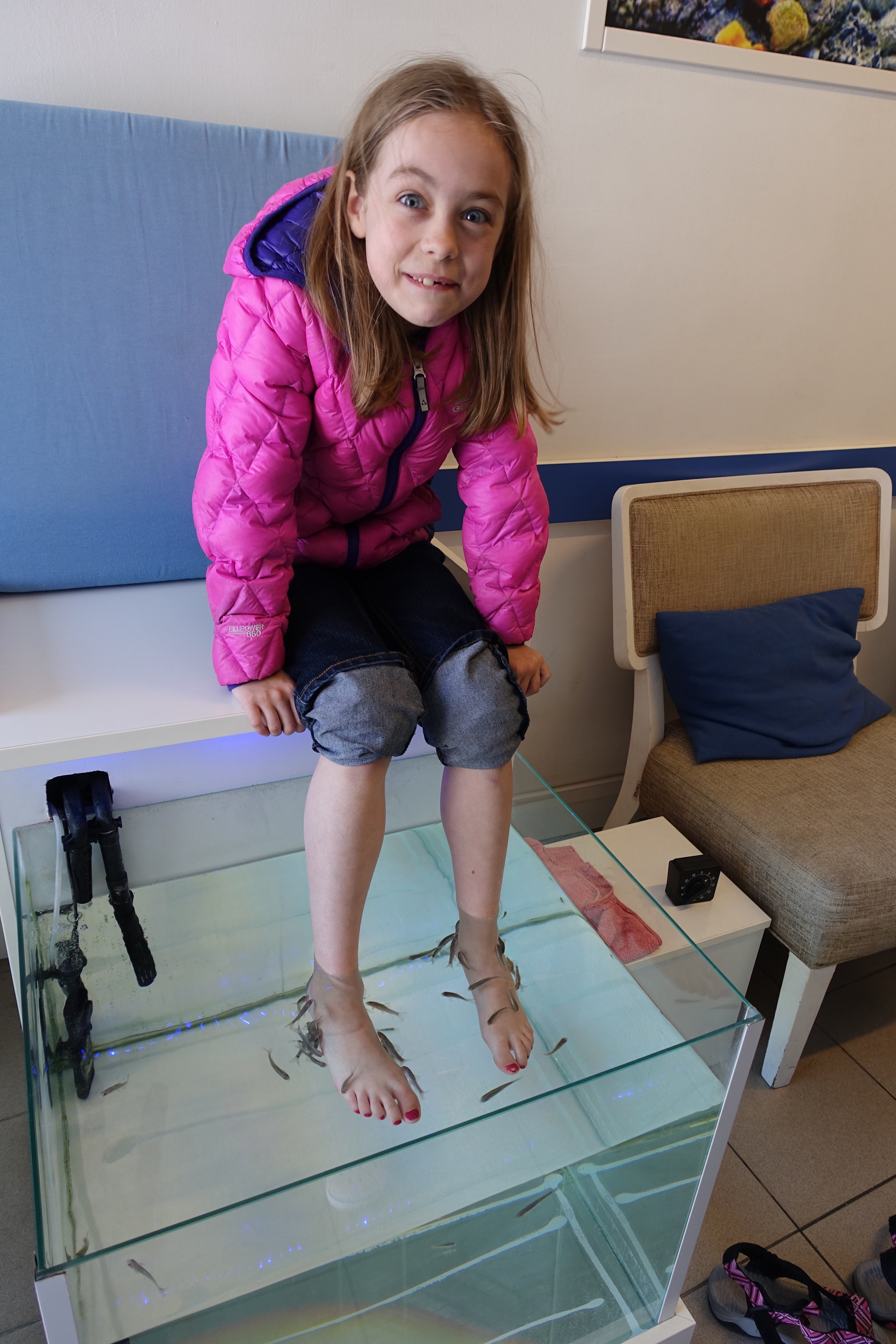 Then we happened upon a fish pedicure place. Oldest was fascinated and HAD to try it out! She ended up going back to this place 3 times during our week long visit! And we all ended up getting a treatment by the end of the week. It’s such a WEIRD sensation! But I must say, our feet were baby-butt soft afterwards!