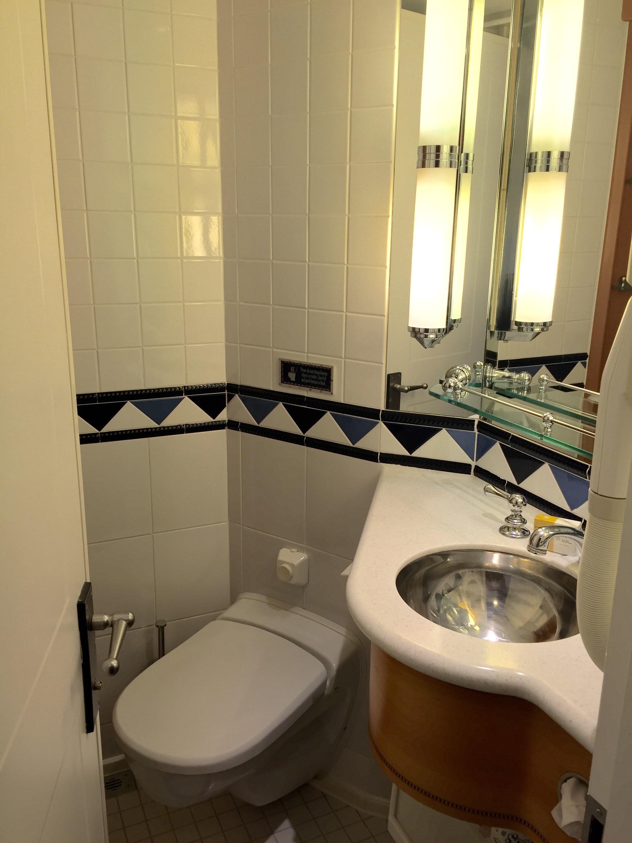 One great thing that makes Disney ships different are their bathrooms. There are 2 rooms in each stateroom – one has a the shower/tub and sink, and the other has the toilet and a sink. Having 2 sinks is great when everyone is clamoring to brush their teeth!